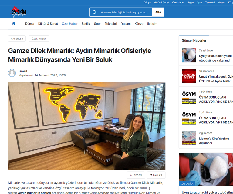 GAMZE DİLEK MİMARLIK: AYDIN MİMARLIK OFİSLERİYLE MİMARLIK DÜNYASINDA YENİ BİR SOLUK