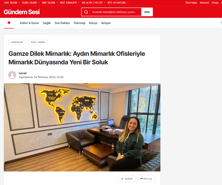 GAMZE DİLEK MİMARLIK: AYDIN MİMARLIK OFİSLERİYLE MİMARLIK DÜNYASINDA YENİ BİR SOLUK